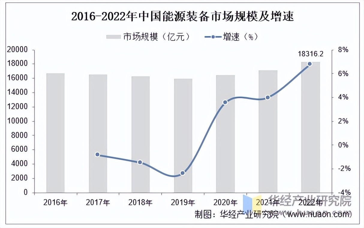 能源装备是能源技术的载体,是为能源工业提供技术装备的战略性、基础性产业,先进的能源装备是实现能源工业健康、快速、科学发展的根本保障。2016至2022年,我国能源装备市场规模呈现出先下降后上升的趋势,2022年中国能源装备市场规模约为18316.2亿元,同比增长6.75%。